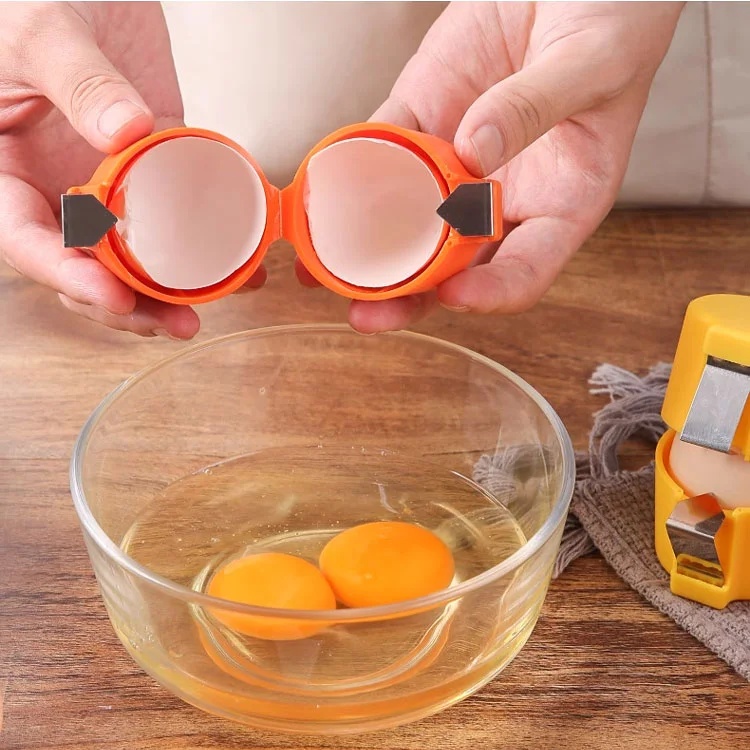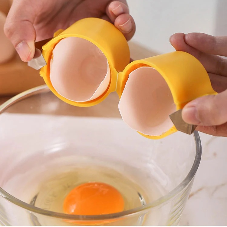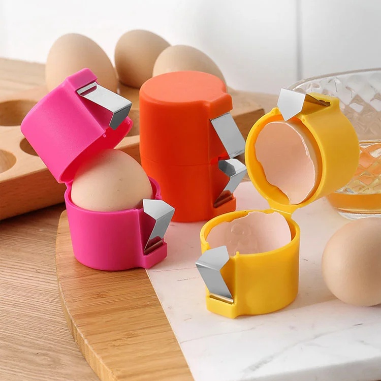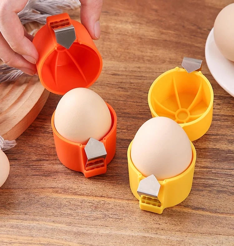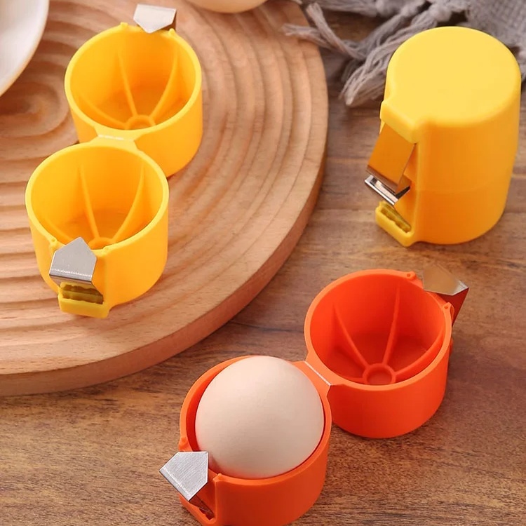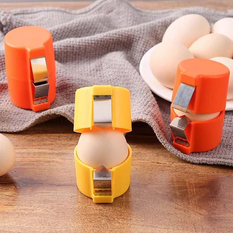 Enkel och snabb äggöppning: Den är ergonomisk, har en kubdesign och ett ovalt spår, och äggöppnaren kan hålla ägget stabilt, så att ägget inte faller ner och skalbitarna inte faller av när ägget öppnas. Och det skadar inte äggulan och smutsar inte händerna alls.