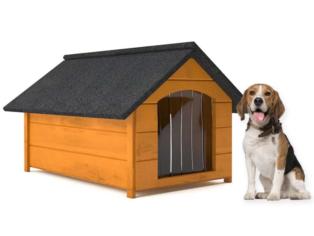 Den isolerade hundkojan som är tillverkad av furukonstruktion och paneler ger honom denna utmärkta plats. Dessutom kräver den inte mycket underhåll.