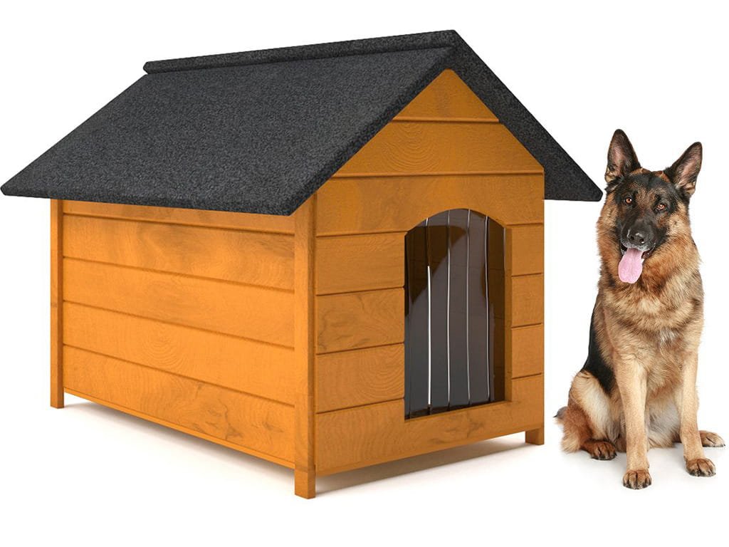 Den isolerade hundkojan som är tillverkad av furukonstruktion och paneler ger honom denna utmärkta plats. Dessutom kräver den inte mycket underhåll.